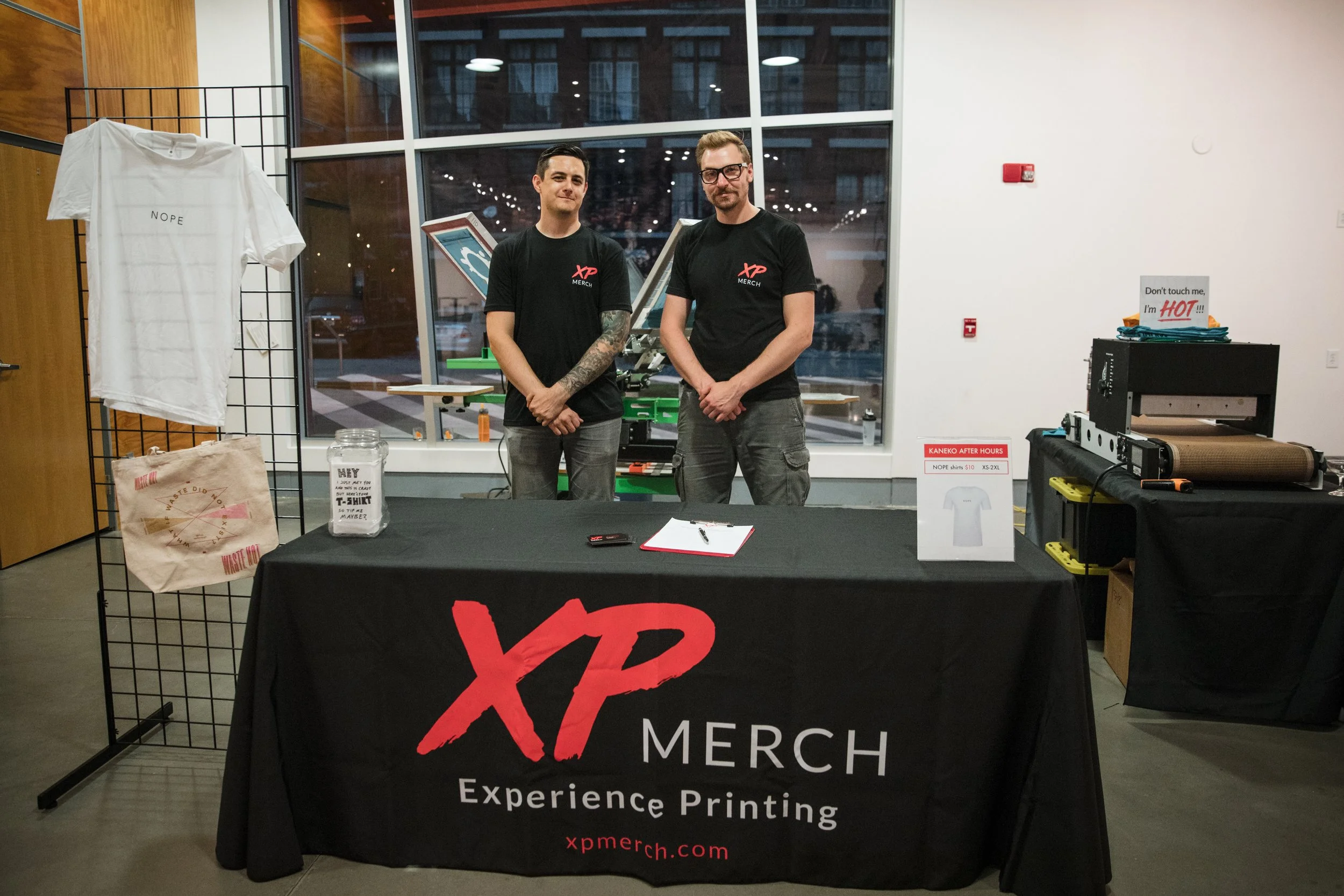 We started out printing small jobs for local businesses, but our main service was bringing our mobile screen-printing setup to events to live-print shirts. We printed shirts only as they were sold, eliminating any wasteful left overs.