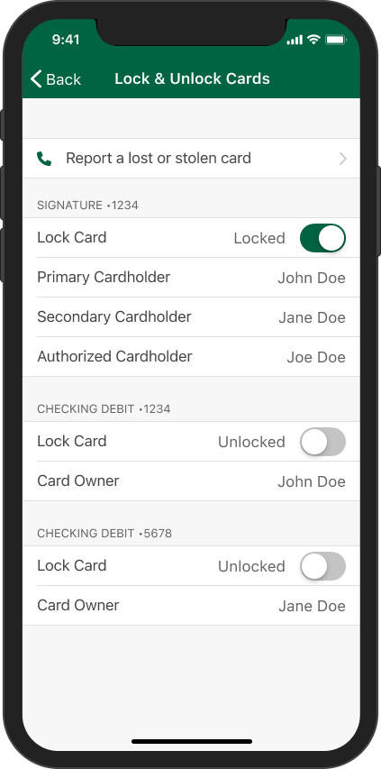 Provided the ability for users to lock and unlock their credit and debit cards to prevent fraud